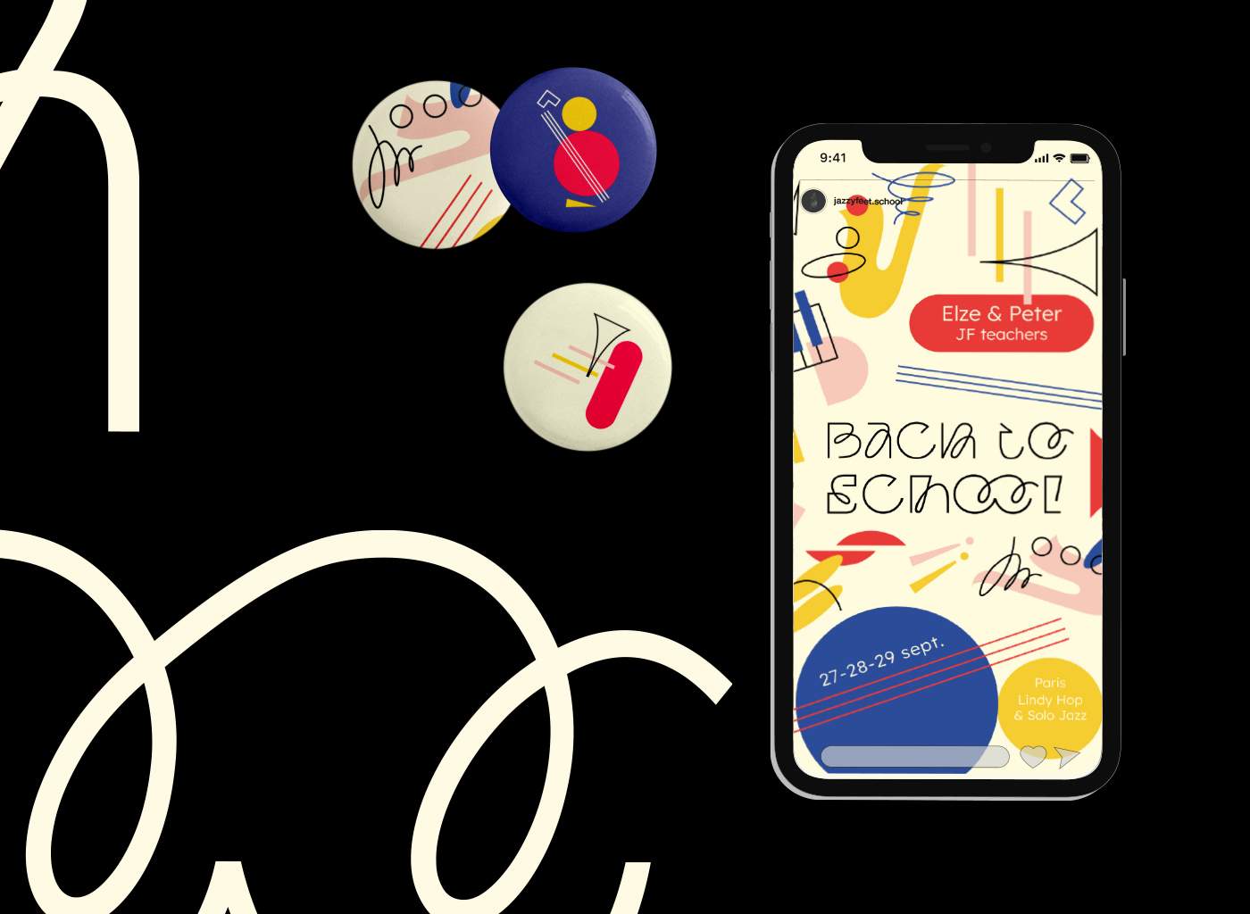 Visual identity design for the Back to School! Lindy Hop Workshop with Peter & Elze. A back to school dance workshop led by internationally renowned instructors Peter (USA) & Elze (Lithuania) , held in Paris 17ᵉ, September 27‑29, 2024 organized by Jazzy Feet School (Event unfortunately canceled).